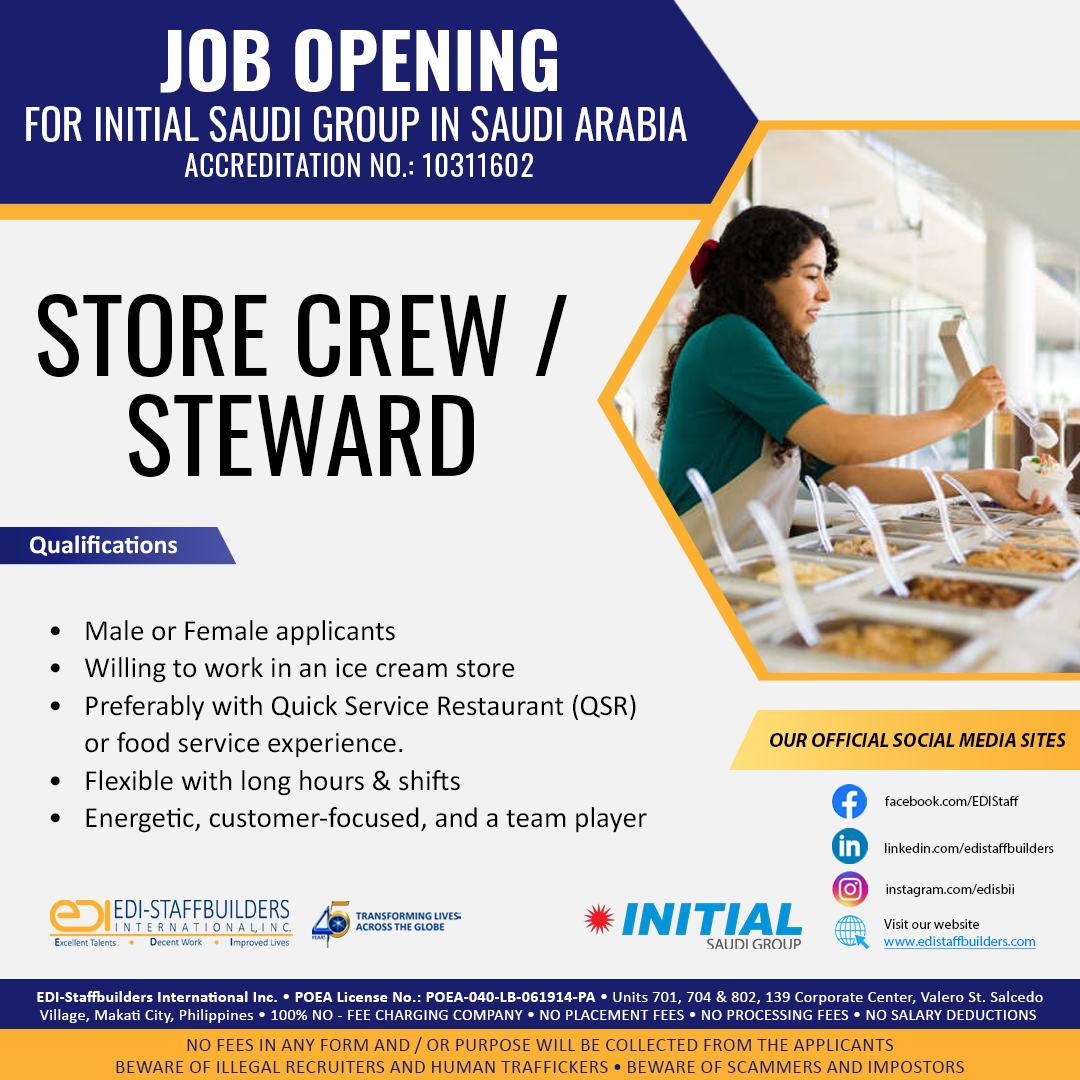 I hereby agree and consent that EDI-Staffbuilders International may collect, use, disclose and process my personal and sensitive data set out in this form and/or otherwise provided by me or processed by EDI-Staffbuilders International for one or more of the purposes as stated: (a) processing my job application for EDI-Staffbuilders International's client, prospects, affiliates, business partners and related companies; (b) sending me marketing, advertising and promotional information about EDI-Staffbuilders International. affiliates, business partners and related companies (c) other processes and procedures where there are pertinent need to use my personal and sensitive data.